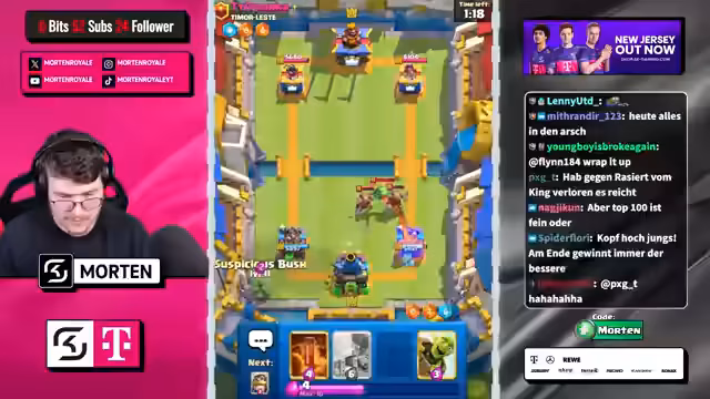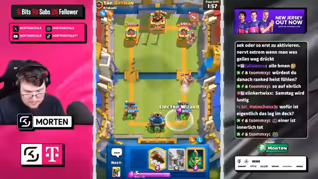 00:01:05Der Stream beginnt mit technischen Anfängerschwierigkeiten, bei denen sich der Streamer nicht einloggen konnte. Nach einer Lösung wird das Gameplay im Chaos-Modus gestartet, wobei der Fokus auf dem Erreichen von Platz 1 der Welt liegt. Der Streamer analysiert das Meta-Deck und die Strategien der Top-Spieler, wie Orion, und entscheidet sich für den klassischen Aal. Besonderes Augenmerk wird auf die mächtige und manchmal frustrierende Karte "Baby Dragon" gelegt, die als übermächtig beschrieben wird. Der Modus als solcher wird als sehr zufallsabhängig, aber auch für einen schnellen Aufstieg geeignet erachtet.