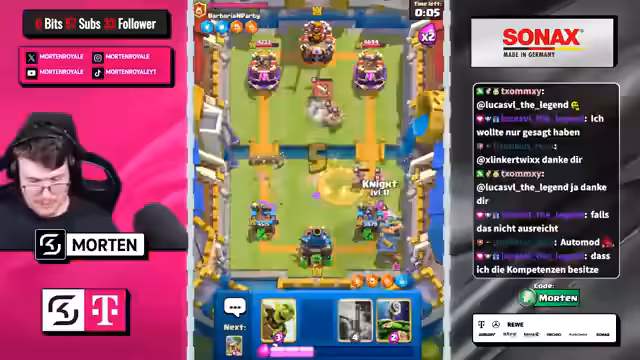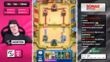 05:46:04Zu Beginn des Stream-Ausschnitts konzentriert sich der Streamer auf den C.H.A.OS Modus, wobei er sich wiederholt über den Zufallscharakter und die Ungerechtigkeit beschwert. Er erleidet Niederlagen durch Karten wie den E-Wiz und die E-Barb, die der Gegner früh erhält, während er selbst nur schwache Karten zieht. Die wiederholten Pech-Serien und die offensichtliche Überlegenheit des Gegners bei bestimmten Karten führen zu großer Frustration, und er bezeichnet den Modus als rigged, unfair und unberechenbar.