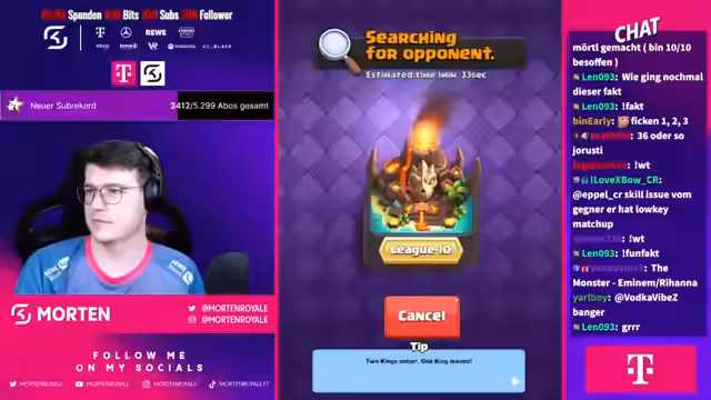 Mortenroyale scheidet aus dem Clash Royale Turnier aus und analysiert seine Spiele. Technische Probleme beeinträchtigten den Start des Streams. Er bedankt sich für die Unterstützung, spricht über eine mögliche Collab mit Jihoo und kündigt an, die Top 32 mit Opossum zu casten. Zudem reflektiert er über Karrierepläne.