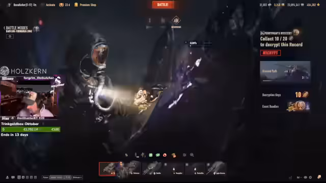 05:47:10Der Streamer startet das neue Babylon-Event, das stark an das bekannte Mirni-Event angelehnt ist. Er bemerkt, dass es sich fast identisch anfühlt, aber mit neuen Bossen. Er bereitet seinen Panzer vor, wählt die Dublette und stellt die Fähigkeiten ein. Er ist erleichtert, dass das Event funktioniert, nachdem er den gesamten Tag mit technischen Problemen auf dem Server zu kämpfen hatte.