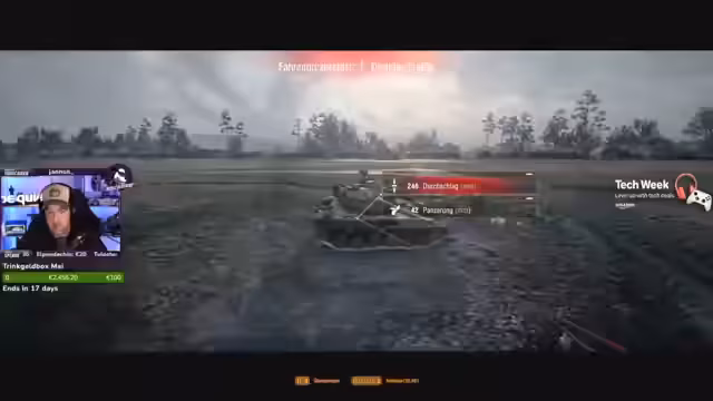 02:26:04Der Streamer beschäftigt sich intensiv mit dem Spiel, insbesondere mit Missionen für die Amazon Tech Week. Er berichtet über das Erreichen verschiedener Missionziele, wie das Zerstören von Fahrzeugen und das Erlangen von Kills. Auch sein Unmut über technische Spielprobleme und eigene Leistungsschwankungen kommt zum Ausdruck. Er erwähnt spezielle Panzer wie den Rheinmetall-Panzerwagen und äußert sich zu deren Einsatzchancen im Spielkontext.