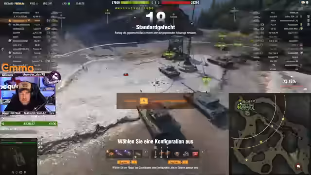 00:03:56Nach der Einleitung folgt der Kern des Streams: das Erfüllen von Panzerwünschen der Zuschauer. Der Streamer spielt verschiedene Panzer wie den Panzer 5-4, den C-57 Heavy und den PTZ, während er die Spiele live kommentiert. Dabei bewertet er die Performance der Fahrzeuge, interagiert mit Spenden und Bitten der Community und erfüllt gezielte Wünsche, beispielsweise für Zuschauer wie Sraven oder Christian. Die Gameplay-Sequenzen werden mit strategischen Überlegungen und persönlichen Einschätzungen untermalt.