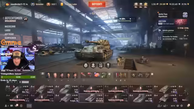 01:09:42Der Streamer übt Kritik an der Leistung seines Teams in einer Spielrunde, beschreibt die Situation als beinahe zum Durchhören und analysiert die Ursachen für die schlechte Performance. Er vergleicht Panzer wie den Laien mit anderen wie dem Leopard und bewertet die Spielmechaniken der jeweiligen Fahrzeuge. Trotz der negativen Erfahrungen bleibt der Fokus auf der Interaktion mit der Community und dem Erfüllen weiterer Panzerwünsche, etwa für Zuschauer wie Onkel 2015 und Kitzkalle.