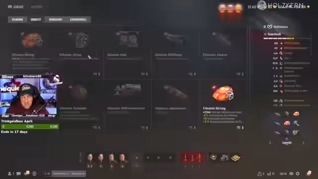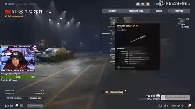 00:00:00Der Streamer startet ein einzigartiges Experiment, bei dem er die Panzer fährt, die ihn in der vorherigen Runde getötet haben. Als Hauptregel gilt: Wenn er von einem Artilleriegeschoss (Arti) getötet wird, muss er in der nächsten Runde einen Panzerjäger (TD) der nächst niedrigeren Stufe fahren. Dieses Konzept dient als Abwechslung und Herausforderung. Er beginnt auf Stufe 5, um flexibel in die Stufen aufsteigen und wieder absteigen zu können. Ziel ist es, die Garage voll auszunutzen und die dadurch entstehenden Panzerkombinationen zu erkunden.