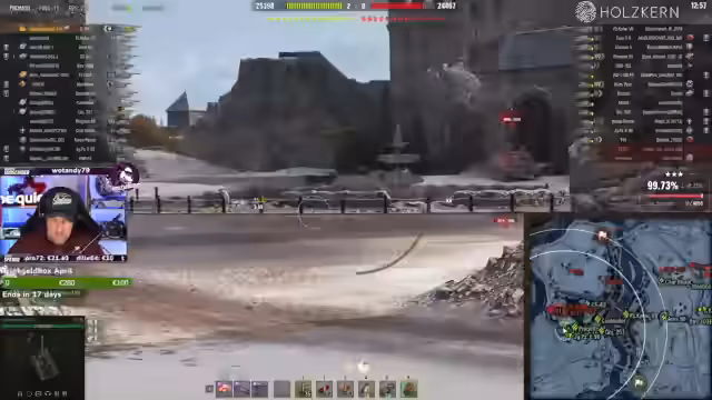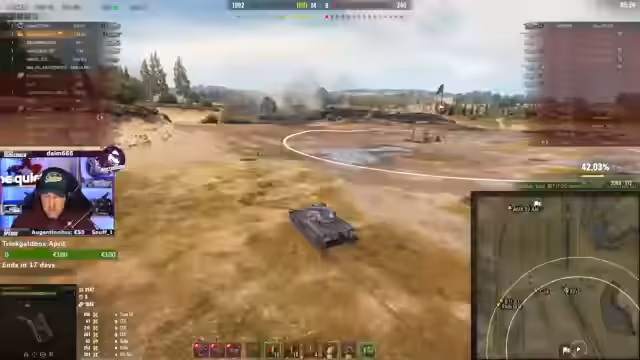 02:10:20Der Streamer zeigt sich humorvoll gelassen und sarkastisch gegenüber der eigenen Performance. Nach einem verpatzten Schuss kommentiert er selbstironisch: 'Sehr fair von euch. Ihr wollt mich die ganze Zeit nur sterben sehen'. Er spielt mit der Erwartungshaltung seiner Zuschauer, die den nächsten Panzer anstelle seines Überlebens erwarten. Diese humorvolle und selbstreflexive Haltung prägt die Stimmung des Streams und interagiert direkt mit dem Chat.