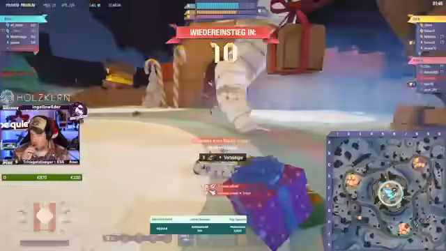 00:00:29Der Stream beginnt mit einer lockeren Sonntagsrunde, in der über den nachgefeierten Geburtstag der Tochter des Streamers in einem Indoor-Kinderspielplatz berichtet wird, der als chaotisch, aber lustig beschrieben wird. Anschließend wird der Winterüberfall-Modus im Spiel vorgestellt. Die Spieler müssen Geschenke sammeln und zur Basis liefern, wobei es Einzelaufträge und Teamziele gibt. Es wird schnell klar, dass dieser Modus im Vergleich zum Vorjahr einige Änderungen erfahren hat, wie sich bewegende Ziele und neue Karten. Die ersten Runden sind von Verwirrung über die Mechaniken, wie Heilung und die Funktion der Basis, geprägt. Trotzdem gelingt es dem Team, erste Erfolge zu erzielen und Geschenke zu sammeln, während sie sich mit den Besonderheiten der neuen Karte und den gegnerischen Teams auseinandersetzen.