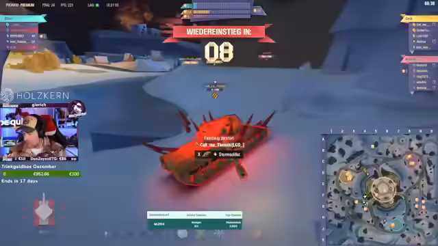 Der World of Tanks-Spielverlauf konzentriert sich auf den Winterüberfall-Modus, in dem Spieler Geschenke sammeln und strategische Kämpfe austragen. Anfängliche Verwirrung über die Spielmechaniken weicht koordiniertem Vorgehen. Parallel dazu überschreitet eine Charity-Aktion wichtige Spendenmarken, getragen von der Großzügigkeit der Unterstützer. Diskussionen über Panzer-Strategien und Spiel-Design begleiten die Runden.