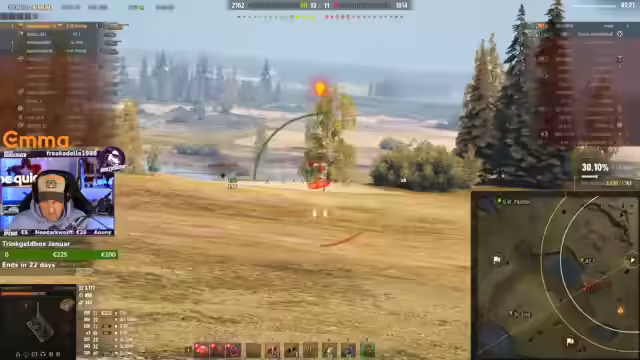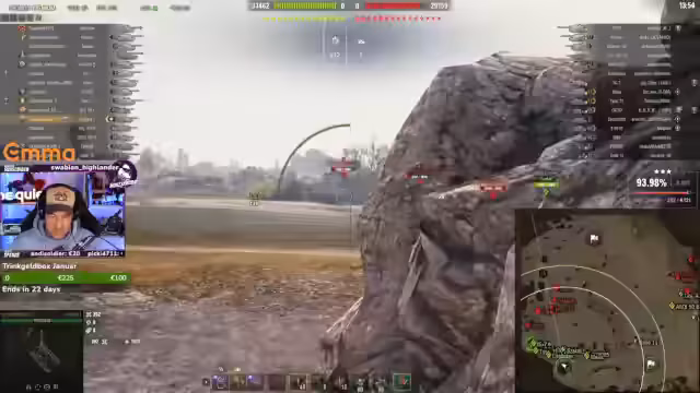 00:12:07Nach der Unterbrechung kehrt der Streamer zurück und beschreibt ein hochmobiles Gefecht. Er thematisiert, dass der Gegner alle Positionen einnimmt, was als unangenehm empfunden wird. Die Panzerwünsche der Community werden weiter verarbeitet. Insbesondere Chris BK erhält für seine Unterstützung die Möglichkeit, einen Panzer zu wählen, was vom Streamer besonders hervorgehoben wird.