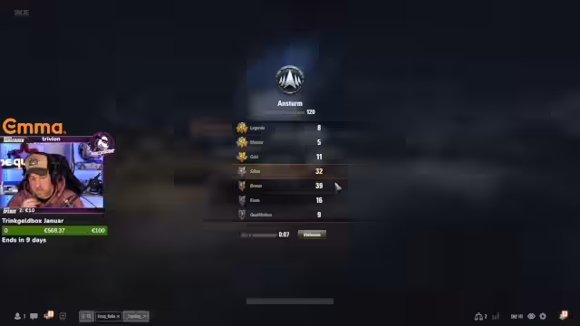 00:00:00Der Stream startet mit dem Einstieg in den Spielmodus 'Ansturm Onslaught' in Saison 5, um die wöchentlichen Missionen zu erfüllen. Das erklärte Tagesziel ist es, diese Missionen erfolgreich abzuschließen und den eigenen Rang zu verbessern. Der Streamer wählt den Panzer T57 und betont die Notwendigkeit, sofort ins Gefecht zu gehen, ohne viel zu verlieren.