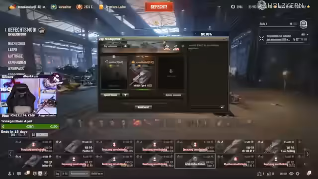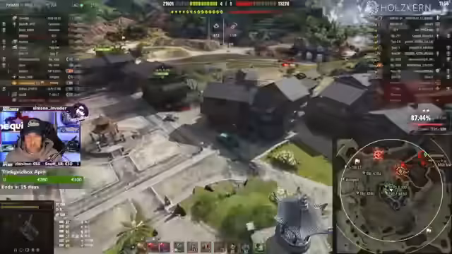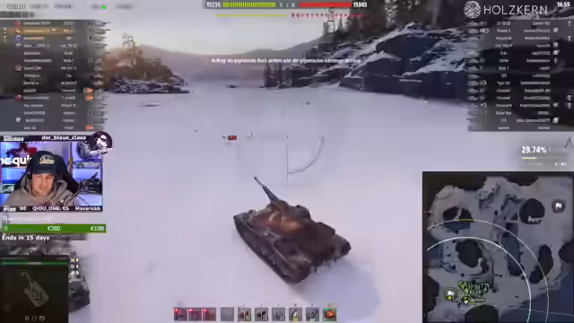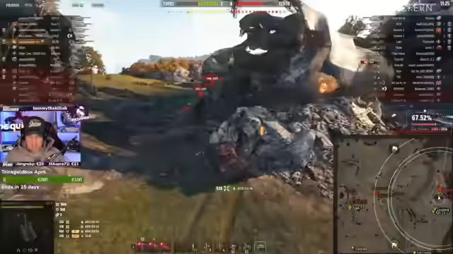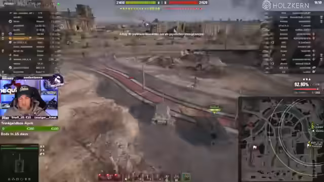 05:21:17Im Stream wird intensiv das Gameplay mit dem Hirschkäfer thematisiert. Streamer und Co-Spieler koordinieren Angriffe auf gegnerische Panzer, insbesondere den Hirschkäfer. Es kommt zu mehreren Duellen, bei denen gegnerische Einheiten erfolgreich ausgeschaltet werden. Besonderer Fokus liegt auf der Positionierung und der Nutzung von speziellen Fähigkeiten wie dem Amoreg-Skill, das garantierte Blows bei voller Aufladung und unter 800 HP ermöglicht.