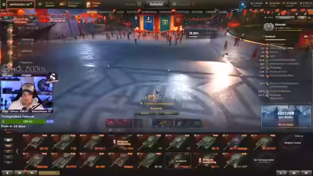 00:00:00Der Stream beginnt mit der Begrüßung der Zuschauer und der Ankündigung des heutigen Programms. Hauptfokus liegt auf dem Ansturm-Modus auf dem Hauptaccount, um die wöchentlichen Missionen zu erfüllen. Anschließend ist geplant, Randoms zu fahren und eventuell einige Gunmarks voranzutreiben. Ein erstes Video zu den neuen Luna Boxen wurde bereits hochgeladen und kurz erwähnt. Die ersten Runden im Ansturm-Modus werden gestartet, wobei die Mission als eher speziell und unorganisiert beschrieben wird.