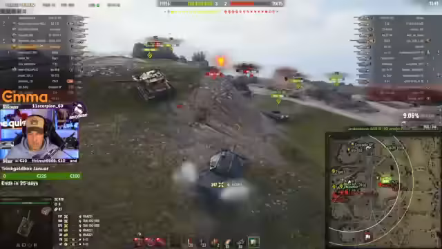 00:15:30Der Streamer fokussiert sich nun auf den Panzer KR1 und äußert die Meinung, dieser sollte gebufft werden, da er zu schwach performe. Er beschwert sich über die unfairen Matchmaking-Begegnungen und die schlechte Leistung des eigenen Teams in den Runden. Die Stimmung ist gemischt, mit einigen sehr guten und vielen frustrierenden Runden. Der Stream endet damit, dass der Streamer den Stream beendet und die Zuschauer für ihren Support dankt.