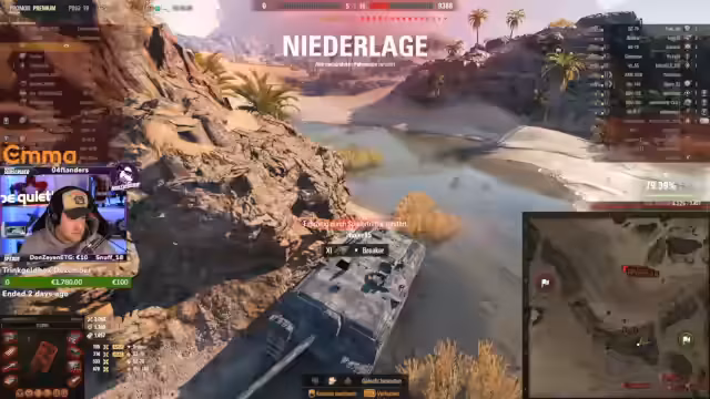 03:28:23Das Stream-Startverhalten ist von häufiger Frustration über das Matchmaking und die Leistung des eigenen Teams geprägt. Der Streamer kämpft mit Panzern wie dem Panther M10 und dem Skorpion, fühlt sich jedoch vom eigenen Team im Stich gelassen. Er kritisiert das strategische Vorgehen, bei dem Mitspiiller falsche Positionen belegen oder sich nicht koordinieren, anstatt gemeinsam vorzugehen. Besonders ärgerlich ist das Verhalten von Spielern, die sich unkooperativ verhalten, Campen oder den Angriffen des Streamers im Wege stehen, was zu unnötigen Verlusten und verlorenen Gefechten führt.