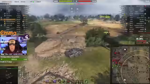 02:59:25Der Spieler befindet sich in einem intensiven Gefecht mit der Grille und drückt seine Frustration über die Dummheit einiger Spieler aus, die ihn verfolgen. Er wird gespottet und getroffen, was zu weiteren Beschwerden über das 'Sonntags-Gameplay' führt. Es wird versucht, die äußeren Flanken zu öffnen und die Gegner zu 'touristen', um die Situation zu entschärfen. Der CS-Panzer wird als ineffektiv beschrieben, und der Gegner rückt aggressiv vor, was zu weiteren Verlusten führt. Der Spieler muss sich zurückziehen und beklagt die schlechte Genauigkeit seiner Kanone, insbesondere der Minotauro-Kanone. Die Teamleistung wird weiterhin kritisiert, da die Gegner 'dreckig campen' und die eigenen Teammitglieder 'geschlachtet' werden. Es wird ein Wunsch nach einem 'Glow-Up' geäußert, da die aktuelle Spielrunde als 'typische Sonntagsrunde' mit zu vielen Fehlern beschrieben wird. Die Frustration über die mangelnde Leistung der Teamkollegen bleibt bestehen, während der Spieler versucht, das Beste aus der Situation zu machen.