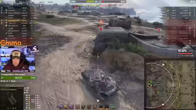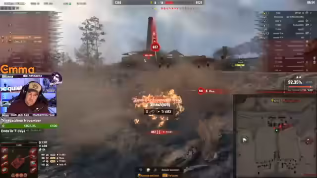 04:25:23Der Streamer kündigt an, den Stream bis 23:00 Uhr oder 23:30 Uhr fortzusetzen und startet sein Spiel neu, um technische Probleme zu beheben. Er versucht, den Cross zu spotten, wird aber selbst gesehen, was zu weiterer Frustration führt. Die Situation wird als 'ganz normaler Sonntag mit ganz normalen Volltrotteln' beschrieben, da die Teamkollegen weiterhin Fehler machen und wichtige Positionen nicht halten können. Der Spieler versucht, eine Bat-Chat zu eliminieren, die als 'erleuchteter Leuchtling' bezeichnet wird. Die Artillerie des Gegners schießt blind in die Position des Spielers, was zu weiteren Verlusten führt. Der Spieler beklagt die mangelnde Unterstützung seiner Teamkollegen und die Überlegenheit der gegnerischen Panzer, insbesondere des Leoparden und der Artillerie. Er versucht, die Grille zu spotten und zu eliminieren, wird aber selbst gespottet und getroffen. Die Situation wird als 'lächerlich' beschrieben, da die Gegner scheinbar überall hinschießen können. Der Spieler verliert kurz die Kontrolle über sein Fahrzeug, kann sich aber wieder befreien und weitere Ziele eliminieren. Er beklagt die 'falsche Mega-Rolle', die er ausgeführt hat, und die mangelnde Unterstützung seiner Teamkollegen. Der Kampf geht weiter, während der Spieler versucht, die verbleibenden Gegner zu eliminieren und den Sieg zu erringen.