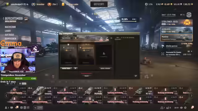 00:00:19Der Stream beginnt am Sonntag um Viertel vor vier mit der Ankündigung, dass es die letzte Chance für die Zuschauer ist, sich die Kommandanten-Drops zu sichern. Es ist ein langer Stream geplant, der mit dem Fahren des WZ beginnt. Sollte Stan dazustoßen, wird der "Stelener Jäger" abgeschlossen. Anschließend sind weitere diverse Aktivitäten geplant. Nach einer Reihe von Begrüßungen und Danksagungen für Support und Spenden, darunter 20 Subs von Göbs kurz nach Streamstart, geht es in die ersten Gefechte. Die anfänglichen Runden werden als schwierig beschrieben, aber die Hoffnung besteht, dass es heute schneller zu spannenden und erfolgreichen Runden kommt. Es wird über die Effektivität von Artillerie diskutiert, und der Streamer äußert den Wunsch, bestimmte Gegner zu treffen, insbesondere einen RV und eine Maus.