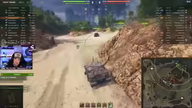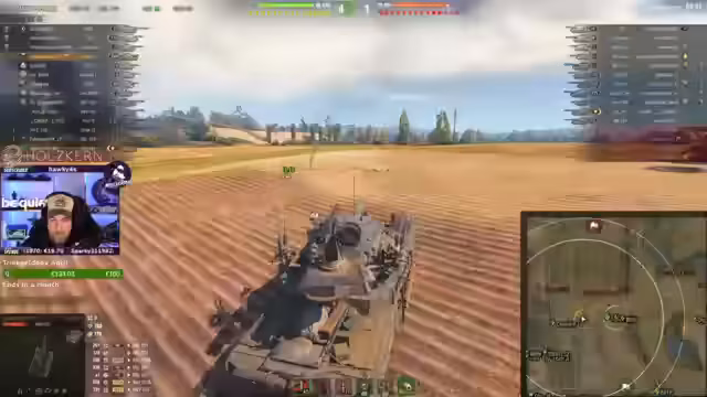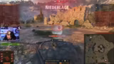 00:10:08Während des Gefechts wird taktisch vorgegangen, mit Fokus auf das Spotting von Feinden und die Verteidigung von Positionen. Der Streamer beobachtet die gegnerischen Bewegungen und äußert sich kritisch über das Teamplay, insbesondere als Feindpanzer unerwartet agieren. Es kommt zu Situationen, in denen der Streamer in einer exponierten Position steht und auf Unterstützung wartet, während gleichzeitig Feinde an einer anderen Flanke aktiv werden. Der Wunsch des Teilnehmers Yukon, einen Conqueror zu fahren, wird eingelöst.