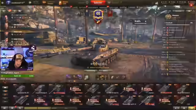 00:16:56Nach einem Rückzug wird die eigene Spielweise reflektiert und kritische Anmerkungen über die Teamleistung geäußert. Es wird darüber diskutiert, warum ein bestimmter Panzer (z.B. der XM) mit einer spezifischen Ausrüstung (Härtung) versehen wird, um im Kampf Vorteile zu haben. Der Panzerwunsch von Dead but happy, eine Raubkatze, wird gestartet. Später folgen weitere Wünsche von Pull the Trigger (Centurion 7-1) und Cooler Bengel (Leopard PTA), wobei der Streamer Bedenken bei der Ausbildung der Crew für den gewünschten Panzer äußert.