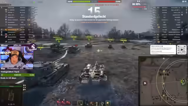 00:01:26Der Streamer startet das Spiel und interagiert aktiv mit Teammitgliedern. Er nennt verschiedene Spieler und tauscht sich über Positionen und Spielstrategien aus. Er erwähnt einen T49, den er verfolgt und in einen Hinterhalt lockt. Der Streamer koordiniert sich mit Teamkollegen, um feindliche Panzer auszuschalten und strategische Punkte zu halten. Er macht sich Sorgen über seine Position und versucht, seine Teamkameraden auf wichtige Feinde aufmerksam zu machen.