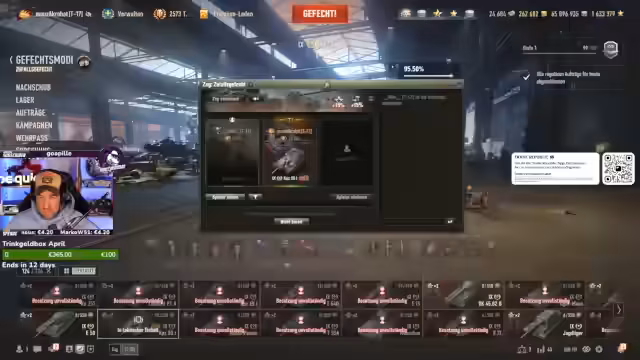 00:00:00Der Stream beginnt mit dem Streamer, der seine Session mit dem Tier-7-Panzer T43 plant und erwähnt, dass es noch Commander-Drops gibt. Er erklärt, dass er zunächst auf Tier 7 fahren und sich dann auf Tier 10 ausbreiten möchte. Der Streamer zeigt verschiedene Panzer und Matchmaking-Einstellungen, während er mit Chat-Interaktionen beginnt und einige Teammitglieder erwähnt. Er betont, dass er gerne Feldmodifikationen auf seinen Panzern fertigstellt und über seine Spielstrategien spricht.