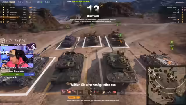 00:00:00Der Stream beginnt mit der Ankündigung, das Ansturm-Finale in World of Tanks gemeinsam mit Stan abzuschließen. Der Spieler ist bereits bei 1800 Punkten, Stan bei 1000. Die ersten Runden verlaufen tendenziell nicht optimal, obwohl die Spieler bereits etwas eingespielter sind. Es wird diskutiert, welche Panzer am besten geeignet wären, wobei der 57er und die Batchett in Betracht gezogen werden. Trotz anfänglicher Schwierigkeiten und der Sorge, ob überhaupt noch genügend Spieler für den Ansturm zu finden sind, bleibt die Motivation hoch, das Finale erfolgreich zu bestreiten. Die Strategie, zu zweit hinten herumzufahren, wird kurz überlegt, aber schnell verworfen, um stattdessen die Gegner direkt zu pushen. Ein erster Gefechtsverlauf zeigt jedoch, dass die Koordination noch nicht perfekt ist und die Gegner schnell die Oberhand gewinnen können, was zu einem mittelschweren Problem führt und ein Halten der Position erfordert.