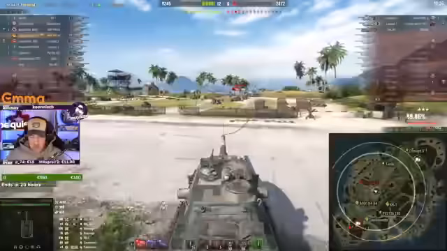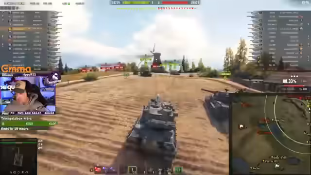 00:28:00Während des AMX-Gameplays werden wichtige taktische Entscheidungen getroffen. Nachdem der Streamer mit dem RV-Hitzepanzer gehandelt hat, entscheidet er sich, mit dem AMX weiterzumachen. Es wird eine Diskussion über die große Kanone des AMX im Vergleich zur kleinen Kanone angestoßen. Der Vorteil der großen Kanone liegt in der Normalisierung der AP-Munition, was mehr penetrierte Schüße bei schrägen Winkeln und besseren Modulschaden ermöglicht. Die Equipment-Ausrüstung wird als wichtiger Faktor für den Erfolg hervorgehoben.