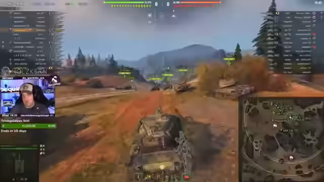02:30:19Der Stream beginnt mit einer lauten Schlacht in einem Panzer, bei der der Teamkamerade 'Tiger' eine enttäuschende Leistung zeigt und nicht in das Kampfgeschehen eingreift. Der Sprecher kritisiert das Verhalten als 'suizidal' und 'Gehirnfurz', während er selbst mit seinem KV-13 versucht, das Team zu tragen, aber ebenfalls eine schwache Leistung des gesamten Teams feststellt. Trotzdem wird der Panzerwunsch '!Panzerwunsch' für die Zuschauer aktiviert.