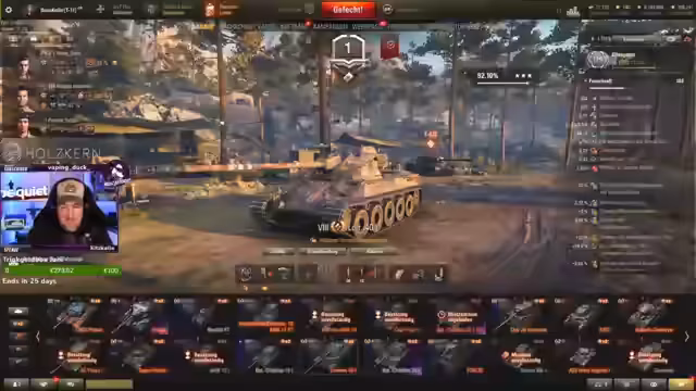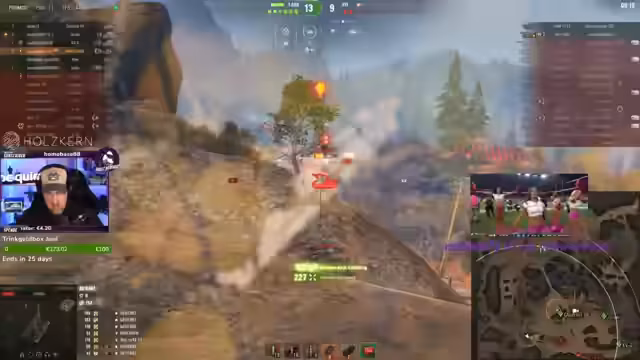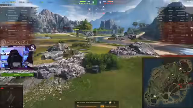 00:12:10Das Gameplay zeigt eine Mischung aus erfolgreichem und frustrierendem Teamerlebnis. Während einige Runden durch strategische Positionierung und Teamarbeit gewonnen werden, klagen viele über den hohen Einfluss von Artillerie und den geringen Nutzen eigener Teammitglieder, die offenbar AFK stehen oder keine sinnvolle Rolle im Kampf übernehmen. Der Streamer wünscht sich ein faires Spiel ohne gegnerische Artillerie, was jedoch oft nur Wunschdenken bleibt. Die Performance variiert stark, von durchschnittlichen bis herausragenden Runden.