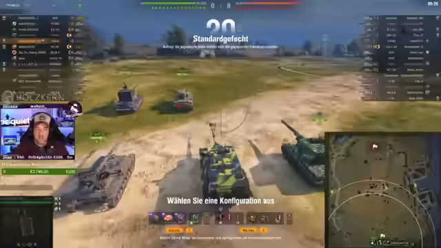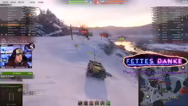 01:52:34Die Spielrunde beginnt mit taktischen Entscheidungen des Spielers, der darauf wartet, bis die Gegner in Reichweite kommen, bevor er schießt. Es erfolgen verschiedene Aktionen wie das Verwenden von Medkits und präzises Zielen, was zu positiven Ergebnissen führt. Der Kommentar 2.6% in einem Spiel! zeigt ein frühes Highlight. Der Ausdruck von Vorfreude auf zukünftige Spiele mit bestimmten Panzern wie CDC, FCM und Amix 65T ist deutlich spürbar.