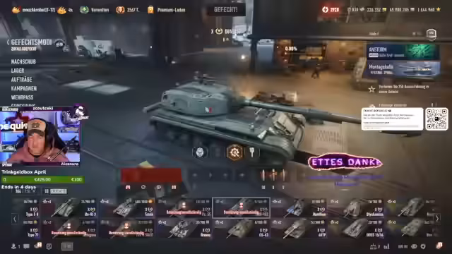 03:11:51Der Streamer kündigt seinen Geburtstag am 04.05. an und plant einen 12-Stunden-Stream, um diesen zu feiern. Er hat von Wargaming eine exklusive Tarnung erhalten, die nur als Drop während des Streams verfügbar sein wird. Zusätzlich gibt es Giveaways wie Uhren, Sonnenbrillen und von Be Quiet gesponserte Produkte. Die Tarnung in den Farben Schwarz, Pink und Lila kann man nach 240 Minuten Zuschauers Zeit erhalten.