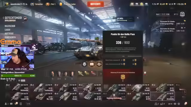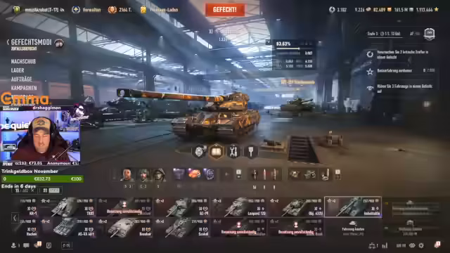 03:14:17Zum Ende des Streams steht die Fertigstellung der Fünf-Aufträge im Fokus. Nachdem der Embeddable und der Leopard 120 abgeschlossen sind, arbeitet der Streamer an den restlichen Panzern. Er erwähnt, dass noch der Hirschkäfer und der Blackrock ausgebaut werden müssen. Er gibt an, dass es nur noch wenige tausend XP fehlen und nutzt freie Erfahrung, um den Prozess zu beschleunigen, bevor er den Stream für eine kurze Unterbrechung verlässt.