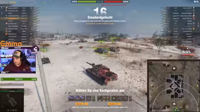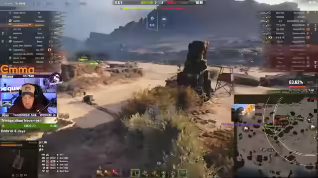 04:03:11Der Streamer stößt auf mehrere Probleme während des Spielverlaufs. Dazu gehören das häufige Spotten durch gegnerische Spieler, was seine Positionen verrät, sowie Schwierigkeiten beim Zielen und Trefferfolg bei bestimmten Fahrzeugen wie der Grille. Das eigene Team wird oft als unkoordiniert und wenig effektiv beschrieben, was zu frustrierenden Situationen und unklaren Spielsituationen auf der Karte führt.