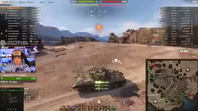 02:52:34Die Spieler versuchen, sich strategisch bei der Brücke zu positionieren, um aggressiv vorzugehen, auch wenn dies ein hohes Risiko birgt. Die Frage nach dem 'Diamantico' bleibt offen, und die Spieler haben das Gefühl, 'von nichts können umgeben' zu sein. Ein 'Hirschkäfer' wird aufgeklärt, und es kommt zu einem 'Bounce' an ihm. Die Spieler sind frustriert über die mangelnde Initiative der Gegner, die 'ein bisschen rauskommen' müssten. Ein 'Hallo' wird erwidert, aber der Gegner hat zuerst zugeschlagen. Die Spieler sind verwirrt, warum sie einen Spotter neben sich haben, aber den Gegner nicht spotten können. Es wird vermutet, dass der Gegner von der anderen Seite gekommen ist. Das Team wird als 'sinnlos' bezeichnet, und es wird festgestellt, dass derselbe 'nutzlose Taschenratenspieler' zweimal hintereinander im Team war. Die Spieler sind frustriert über die wiederholten Fehler und die mangelnde Leistung einiger Teammitglieder. Die Situation wird als 'hart, hart, hart' beschrieben, und es wird der Wunsch geäußert, dies nur mit 'Jackie' ertragen zu können. Die Spieler versuchen, den Hang zu spotten und die 'Leoparden' auszuschalten. Ein 'Renault Twingo' wird als 'beschissenstes Auto' und 'verdammt hässlich' beschrieben, was die Frustration der Spieler widerspiegelt. Die Spieler versuchen, 'immer besser zu sein' und aggressive Moves zu machen, aber die Gegner erweisen sich als hartnäckig. Die 'Taschenratte' im Gegnerteam wird als 'Wurst' bezeichnet, und die Spieler versuchen, einen 'Rheinmetall' zu 'ficken'. Die mangelnde Unterstützung des Teams führt zu gegenseitigen Beleidigungen im Chat, was als 'gut' empfunden wird, da es die 'VOT'-Atmosphäre widerspiegelt. Die Spieler betonen, dass man 'nie selber Schuld' ist und es immer die anderen sind.