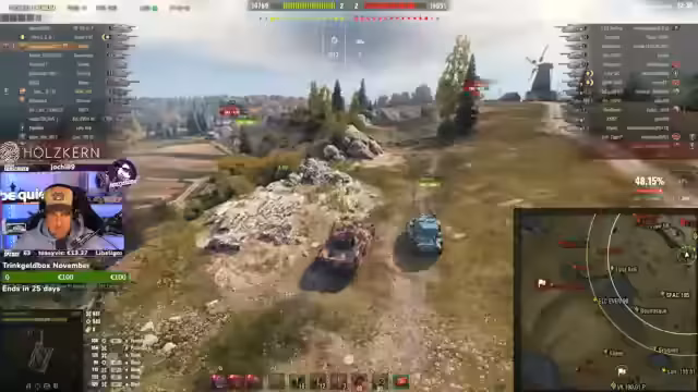 00:48:00Für die Wochenmission müssen kumuliert 35.000 Schaden erzielt werden, wofür voraussichtlich zwei bis drei Runden benötigt werden. Während des Spiels kommt es zu frustrierenden Momenten, in denen das eigene Team, insbesondere die Su-130PM und der XM, als ineffizient beschrieben werden, da sie reichlich daneben schießen und keine Unterstützung bieten. Der Streamer erlebt eine Situation, in der er von Gegnern umzingelt ist und sich im Stich gelassen fühlt. Es wird betont, dass die Spots ununterbrochen vorhanden waren, aber die Schützen des Teams ihre Ziele nicht trafen. Trotz guter eigener Leistungen bleiben die gewünschten Panzerass-Ergebnisse aus.