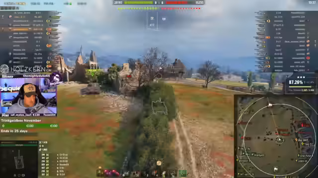 02:19:22In einem weiteren Gefecht zeigen die Spieler eine starke Leistung, indem sie mehrere Gegner ausschalten und wichtige Treffer landen. Ein 'Liz' und ein 'Standard B' werden geklatscht, was die Freude und Motivation im Team steigert. Die Strategie des 'Holzens, Knechtens und Spottens' wird erfolgreich angewendet, um die Gegner unter Druck zu setzen. Ein IS-3 wird als besonders aggressiver Spieler hervorgehoben, der keine Gefangenen macht. Die Spieler spotten eine Vielzahl von Gegnern, sodass 'gar nicht mehr spotlos' ist. Trotz der guten Leistung wird ein 'WT' als 'schlecht' bewertet, und es wird überlegt, ihn anzugreifen. Die Spieler müssen jedoch auch unerwartete Situationen meistern, wie einen Gegner, der mit einem HE-Chip überrascht werden soll. Die Notwendigkeit, 'richtig krass noch spotten' zu müssen, wird betont, da die Gegner aggressiv pushen. Ein gewagter 'Artie Pro'-Move wird versucht, um die gegnerische Artillerie auszuschalten. Die Spieler sind auf 'Ace Denkerkurs' und versuchen, die Stadt zu klären, während sie sich vor einem 'Oho' in Acht nehmen müssen. Die Hoffnung auf ein 'Ace' (Panzerass) ist groß, obwohl die Realität oft nur eine '1. Klasse' oder '2. Klasse' zulässt. Die Dominanz in diesem Gefecht wird als 'stark gespielt' und 'komplett dominiert' beschrieben, wobei die Gegner 'nicht wussten, von wo die Schellen alle kommen'.
