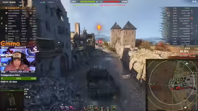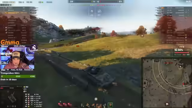 03:29:08Der Streamer fährt mit der Behandlung der Panzerwünsche fort und erhält den Wunsch für einen Churchill Gun Carrier. Er kommentiert das schlechte Matchmaking und die taktischen Fehler des eigenen Teams. Zum Ende des Streams kündigt er für die nächste Woche weitere Spring Token an. Abschließend beendet er den Stream mit dem Wunsch, dass das Team ohne ihn gewinnen möge.