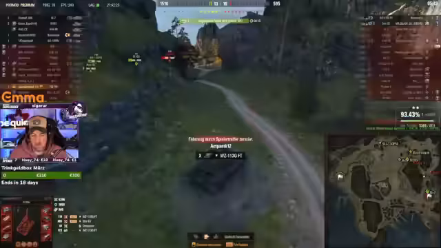 02:01:48Während des Spielgeschehens wird das Verhalten von Mitspielern analysiert und kritisiert, insbesondere wenn队友 übertrieben defensiv spielen oder keine Teamleistung zeigen. Gleichzeitig ist der Streamer für Anfragen des Chats offen, etwa zur Kaffeemaschine oder zur Erinnerung an die Zeit in der Bundeswehr.