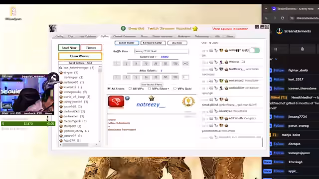 08:08:15Nach einer aufgeregenden Verlosungsphase mit über 500 Teilnehmern wird der Gewinner des Hauptpreises, der ein Gaming-PC ist, bekannt gegeben. Der Gewinner NotReasy kommt aus der Nähe von Oldenburg, was für den Streamer ein Heimspiel ist. Zusätzlich wird eine Darkmoon-Tastatur unter den restlichen Teilnehmern verlost, deren Gewinner Reichsbiermeister ist. Beide Gewinner werden aufgefordert, ihre Adressen preiszugeben.