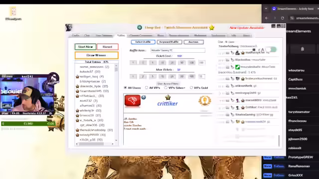 09:07:09Die Hauptverlosung des Streams beginnt: Ein Gaming-PC mit einem i9-9900K, einer RTX 280 Ti und 32 GB RAM wird verlost. Die Teilnahme erfolgt über den Kauf von Tickets zu je 100 Maustalern, wobei ein Zuschauer maximal 10 Tickets erwerben kann. Der Streamer betont die Wichtigkeit des korrekten Commands und kündigt an, dass der Gewinner bei regionaler Nähe eine persönliche Übergabe oder andernfalls einen Versand erhalten werde.