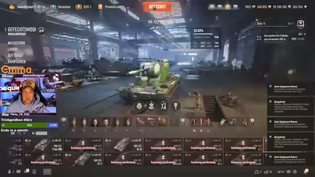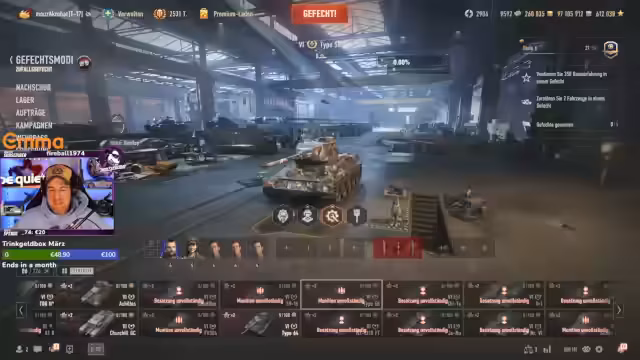 00:03:26Der Streamer wechselt in die Garage, um die Panzer für den Einsatz vorzubereiten. Er rüstet den Type 58 und den Crusader aus, kauft notwendige Forschungspunkte, Munition und auch äußere Module wie Optiken. Bei der Crew-Auswahl stellt er fest, dass er für den Crusader eine neue rekrutieren muss. Hier kommt es zu technischen Verzögerungen, da er versehentlich falsche Einstellungen zurücksetzen muss, bevor er die Crew erfolgreich einsetzt.