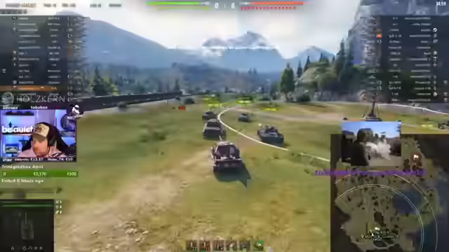 03:12:41Die Reihe der Panzerwünsche geht weiter. 'Bo' wünscht sich einen T4400, den der Streamer auszieht, da er lange nicht mehr damit gespielt hat. Kommentare zur Spielweise werden abgegeben, zum Beispiel wird der E75 als 'Macher' bezeichnet. Auch die Rivalität zu einem gegnerischen Spieler wird thematisiert. Der Streamer fährt verschiedene Panzer und zeigt taktische Manöver, wie etwa ein 'sneaky' Vorgehen gegen einen Gegner, der seine Position falsch einschätzt.