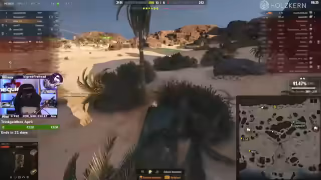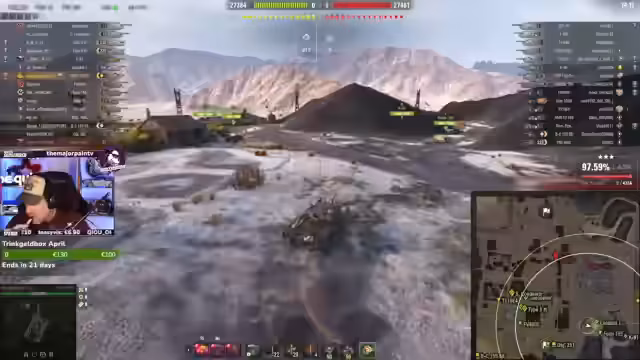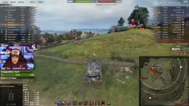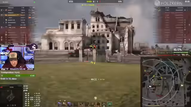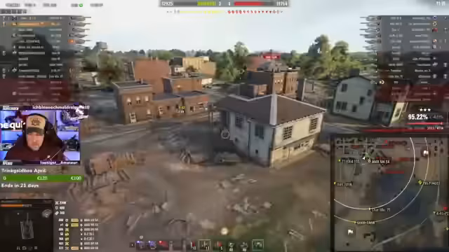 00:00:57Während des Spielverlaufs werden verschiedene Panzer wie der Jagdpanther und Tiger 2 eingesetzt, wobei Fehlschüsse und Bounce-Effekte thematisiert werden. Der Streamer wechselt häufig die Position und agiert als Support für Teamkollegen. Der Chat wird intensiv genutzt, um Grüße auszutauschen und auf Aktionen im Spiel hinzuweisen, wobei auch die Performance von Mitspielern wie einem AFK-Krokodil kritisch bewertet wird.