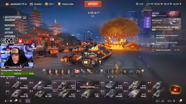 00:00:00Der Stream beginnt mit dem Fokus auf World of Tanks, speziell auf Tier 8 und 10. Der Streamer kündigt an, vorerst wieder in der Tier-11-Linie zu spielen und erklärt, dass er den neuen Panzer Ashigaru aufgrund seiner Leistung nicht erwerben werde. Wichtigstes technisches Problem des Starts ist das Ausfallen des ProMods, was auf ein aktuelles Update zurückzuführen ist und erst behoben werden muss.