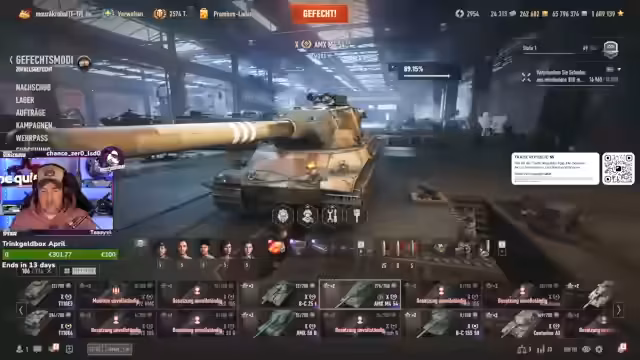 00:00:00Der Stream wird mit dem freitäglichen Panzerwunsch-Stream gestartet, der vorletzte Chance auf den Mauskommandanten bietet. Parallel dazu werden um 17 Uhr neue Drops vom WOT-Geburtstag angekündigt, die für Spieler ohne ausreichend Rationen oder Vorrat empfohlen werden. Der Streamer beginnt mit dem Einkauf von Verbrauchsgütern im Lager und kauft von verschiedenen Panzern jeweils 500 Einheiten ein, um die Vorräte aufzustocken.