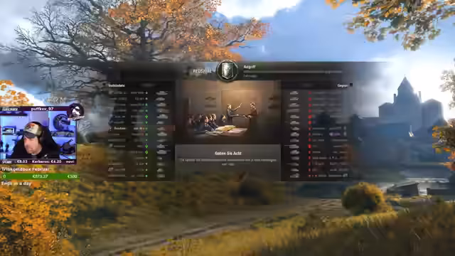 00:00:00Der Stream beginnt mit dem Fokus auf den E75-Grind für einen Free-to-Play-Account. Zuerst wird der T-Shirt 2 aus der Garage verkauft, um Credits freizusetzen. Mit dem gesparten Geld und Bond-Equipment wird der E75 gekauft und zunächst mit einer Bond-Härtung ausgestattet. Um den vollen APC-Experience-Einsatz zu ermöglichen, wird Credit-Booster aktiviert und es wird mit einer Stunde Credits-Fahren begonnen, um die notwendige Spielwährung für den Ausbau des Panzers zu erwirtschaften.