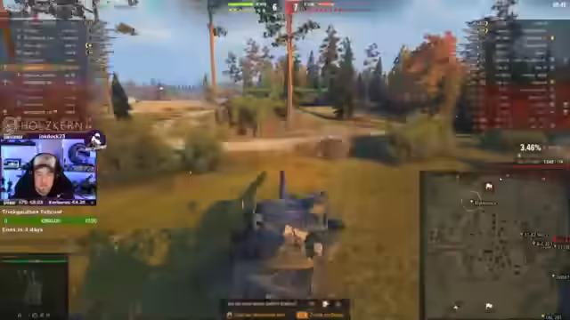 00:10:44Die Skins für den E50M, Blizz Capizza und Type 71 aus dem neuen Battle Pass werden als sehr gelungen beschrieben. Es wird kurz über eine fehlende Dschungelkarte in World of Tanks diskutiert. Im aktuellen Match wird über die Taktik der Teammitglieder diskutiert, insbesondere das Verhalten der TDs und eines Top-Tier-Heavy. Es wird festgestellt, dass das Team von Inkompetenz gesegnet sei. Später im Spiel wird die eigene Leistung kritisiert und das RNG (Zufallsgenerator) als frustrierend empfunden. Der Streamer kommentiert die Bounce-Fähigkeit eines Panther 2 und die Schwierigkeit, bestimmte Panzer zu durchschlagen. Es wird festgestellt, dass der aktuelle Spielstand nach drei Runden bereits kritisch ist.