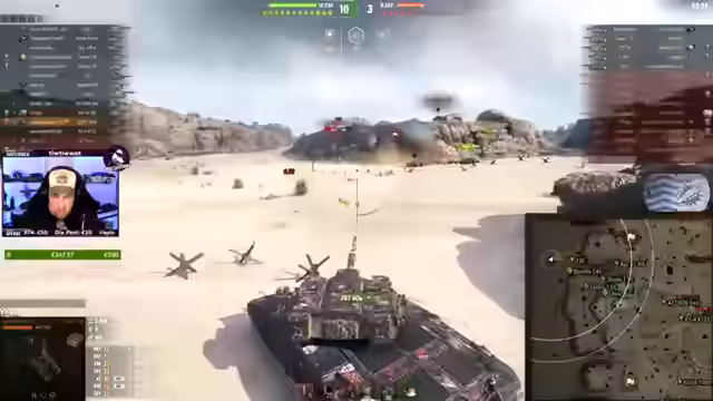 02:51:25Ein neues Gefecht beginnt auf einer Karte mit einer Basis am Strand. Der Spieler identifiziert eine feindliche Turtle-Panzerstellung und plant einen gezielten Angriff. Er beobachtet einen Gegner, der als potentieller Freund gilt, und überlegt, wie er ihn ausmanövrieren kann. Ein erfolgloser Versuch, einen feindlichen Skorpion abzunehmen, führt zu einem kritischen Moment, bei dem sein Emil-Panzer in Gefahr gerät. Dank eines Teammitglieds namens Bisonte kann er die Situation retten, was das taktische Zusammenspiel im Team hervorhebt.
