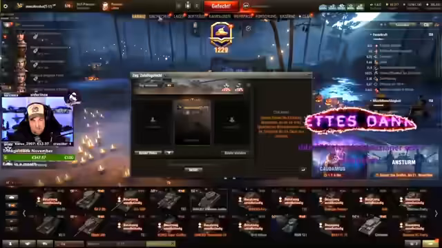 01:10:14Der Stream beginnt mit einer Analyse der Platoon-Dynamik. Es wird erläutert, wie ein gut organisierter Platoon die Siegeschancen deutlich verbessern kann, während ein Platoon mit unterdurchschnittlichen Spielern das Team eher schwächt. Nach einer Vorstellung der im Stream gespielten Panzer wie Chieftain Tane und Objekt 705 wird ein spezifisches Replay analysiert. Ein Spieler macht zunächst einen guten Trackshot, verliert seinen Panzer aber durch einen unvorsichtigen zweiten und dritten Peak gegen einen überlegenen Gegner, was als fahrlässig und selbstverschuldet eingestuft wird.
