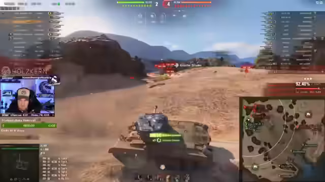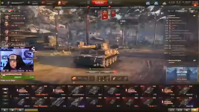 00:04:24Der Streamer konzentriert sich auf das Durchpowern des VK-3601H, um schnell den Tiger zu erreichen. Während des Spiels wird er von mehreren Zuschauern wie Mad Chef und Christian im Chat gegrüßt. Er äußert Frustration über sein Team, insbesondere über einen AFK-Spieler im BZ, und kämpft mit den spielerischen Bedingungen wie dem auf Tier 8 sehr herausfordernden Lorraine-Heavy. Die Gunmark wird als zentrales Grinding-Ziel genannt.