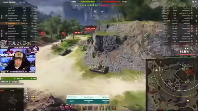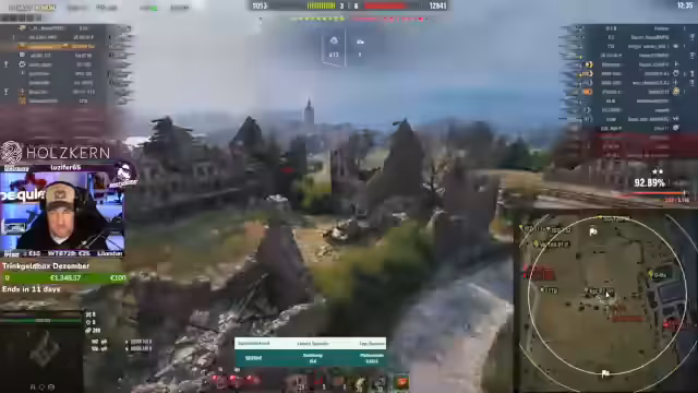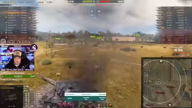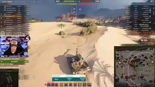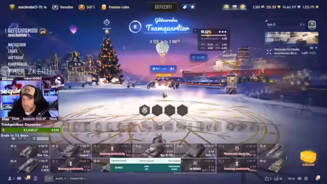 00:37:55Zum 23. Dezember wird ein Gaming-PC-Giveaway angekündigt, das mit dem Hashtag !bequiet beworben wird. Gleichzeitig wird der Tokenladen erwähnt, der während des gesamten Streams geöffnet bleibt. Der Streamer teilt seine persönliche Einschätzung zu verschiedenen Panzern wie dem BZ176 und XM, wobei er den Ars als brauchbaren Panzer bezeichnet.